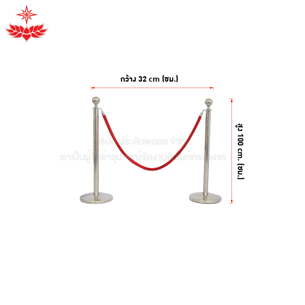 เช่าเสาบริเขตเสาสีเงินสายดึงกลับ ขนาด กว้าง 32 cm. x สูง 100 cm. (เสาขนาด 2 นิ้ว)
