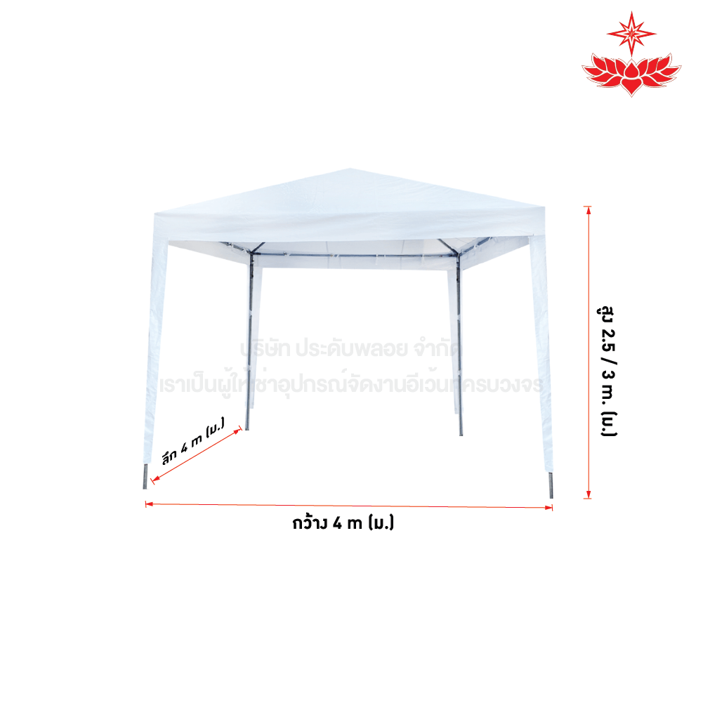 หน้ากว้าง 4 m. x ยาว 4 m. x สูง 2.5 / 3 m. (ตัวเสาขนาด 2 นิ้ว)