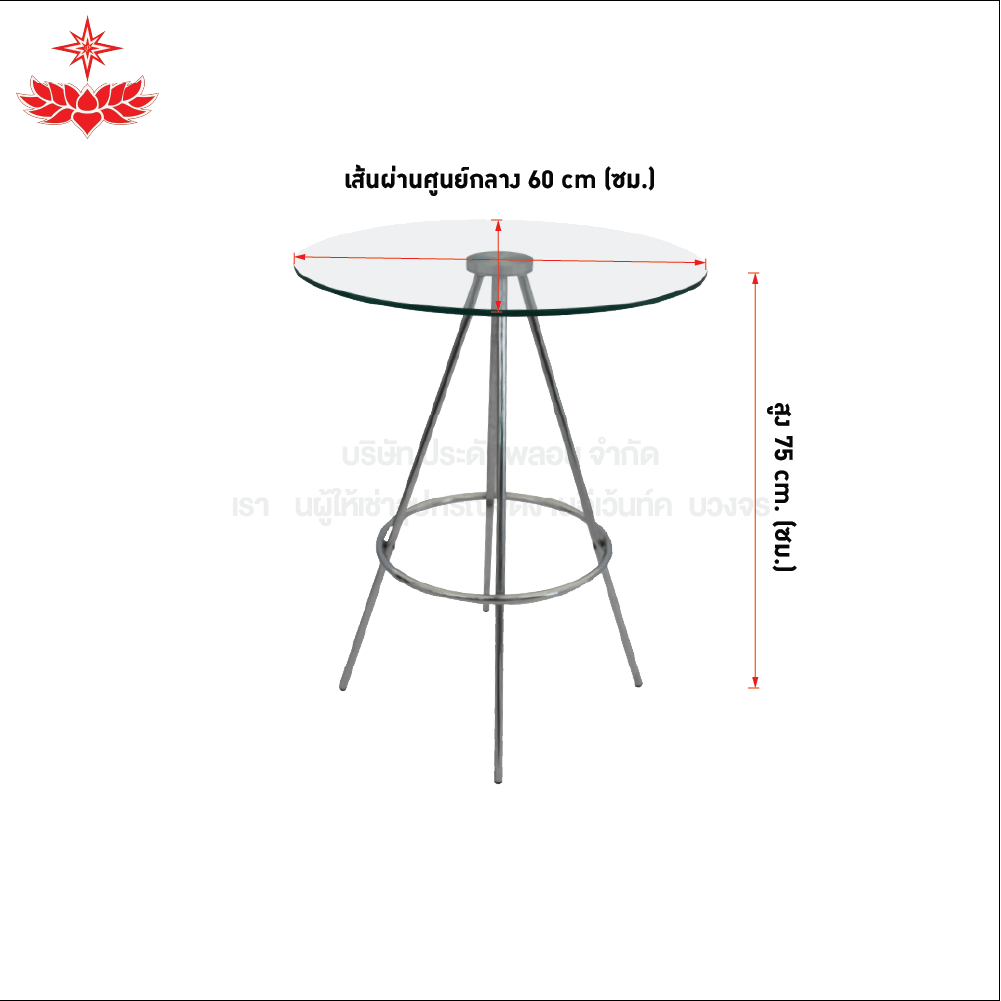 เช่าโต๊ะกระจกขากาง สูง 75 เซนติเมตร