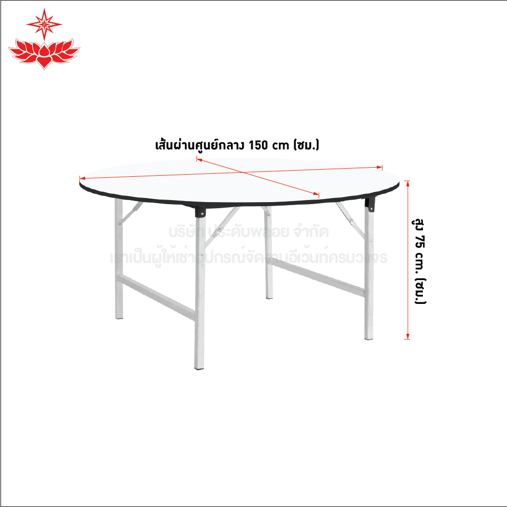 โต๊ะหน้าขาวกลม (ไซส์ M) ขนาดเส้นผ่านศูนย์กลาง 150 เซนติเมต สูง 75 เซนติเมตร