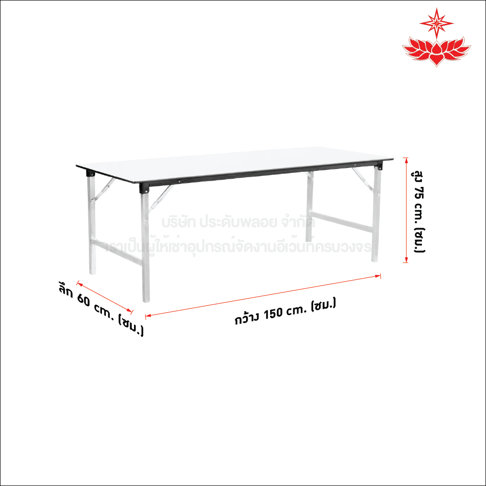 โต๊ะหน้าขาวขนาด กว้าง 150 cm. x ลึก 60 cm. สูง 75 cm.
