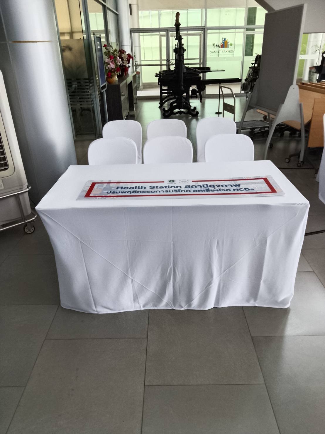 สนใจเช่าโต๊ะหน้าสวมผ้าขาว 1.80*0.60/1.80*0.75 เมตร ได้มาตรฐาน รับประกันความพึงพอใจ ติดต่อ