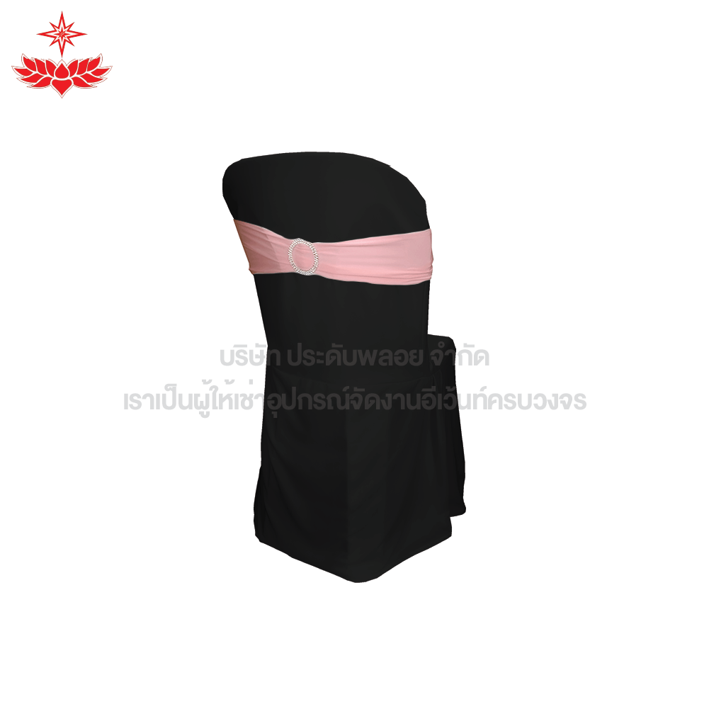เก้าอี้พลาสติกสวมผ้าดำ + โบว์สีชมพูวงกลม