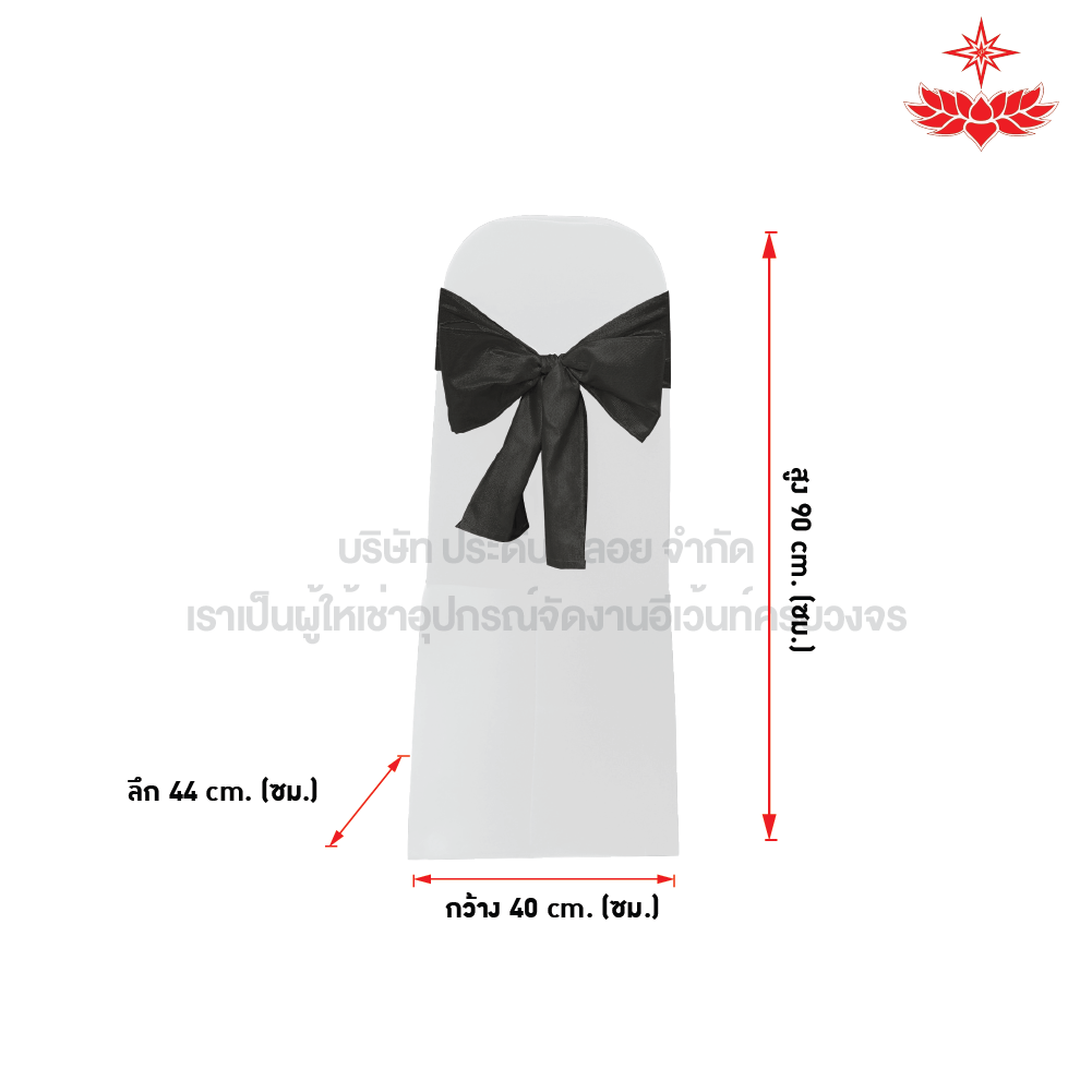 ผ้าขาวตึงคลุมเก้าอี้บุนวม + โบว์สีดำ