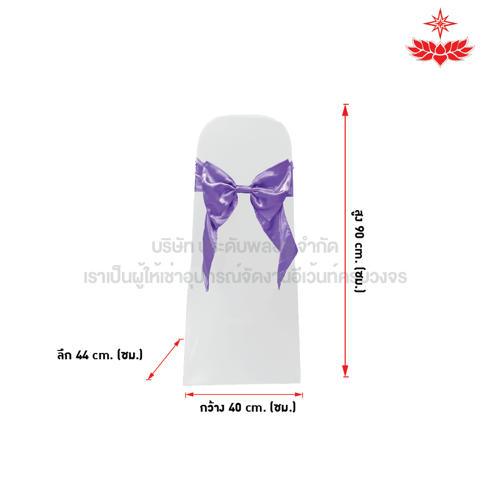 ผ้าขาวตึงคลุมเก้าอี้บุนวม + โบว์สีม่วง