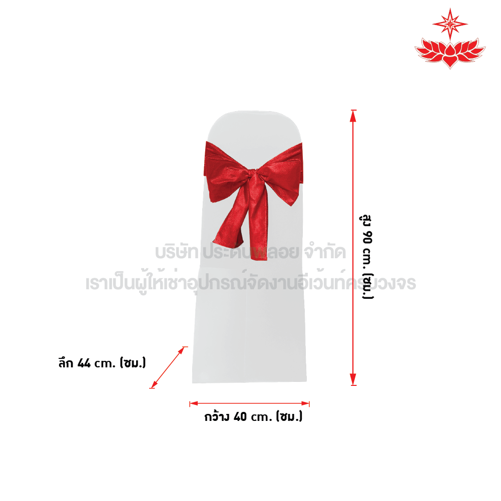 ผ้าขาวตึงคลุมเก้าอี้บุนวม + โบว์สีแดง