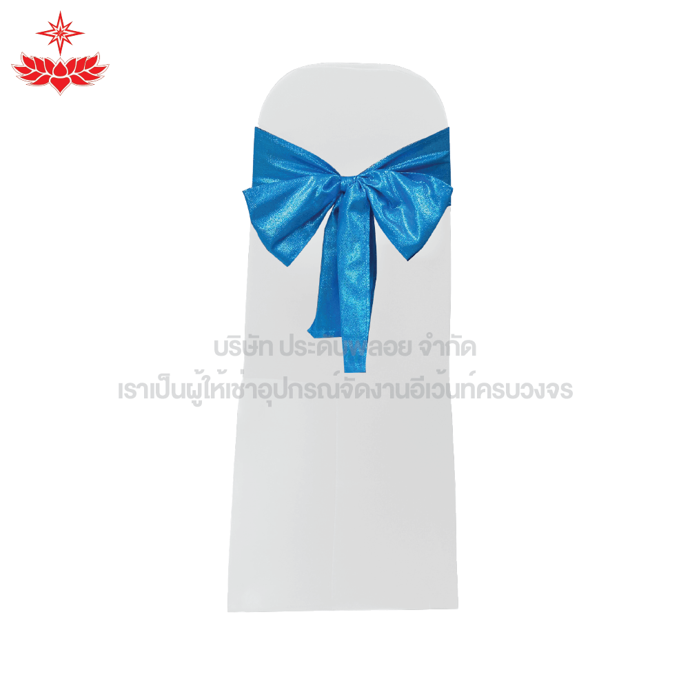 เก้าอี้บุนวมผ้าขาวสวมตึง + โบว์สีฟ้า