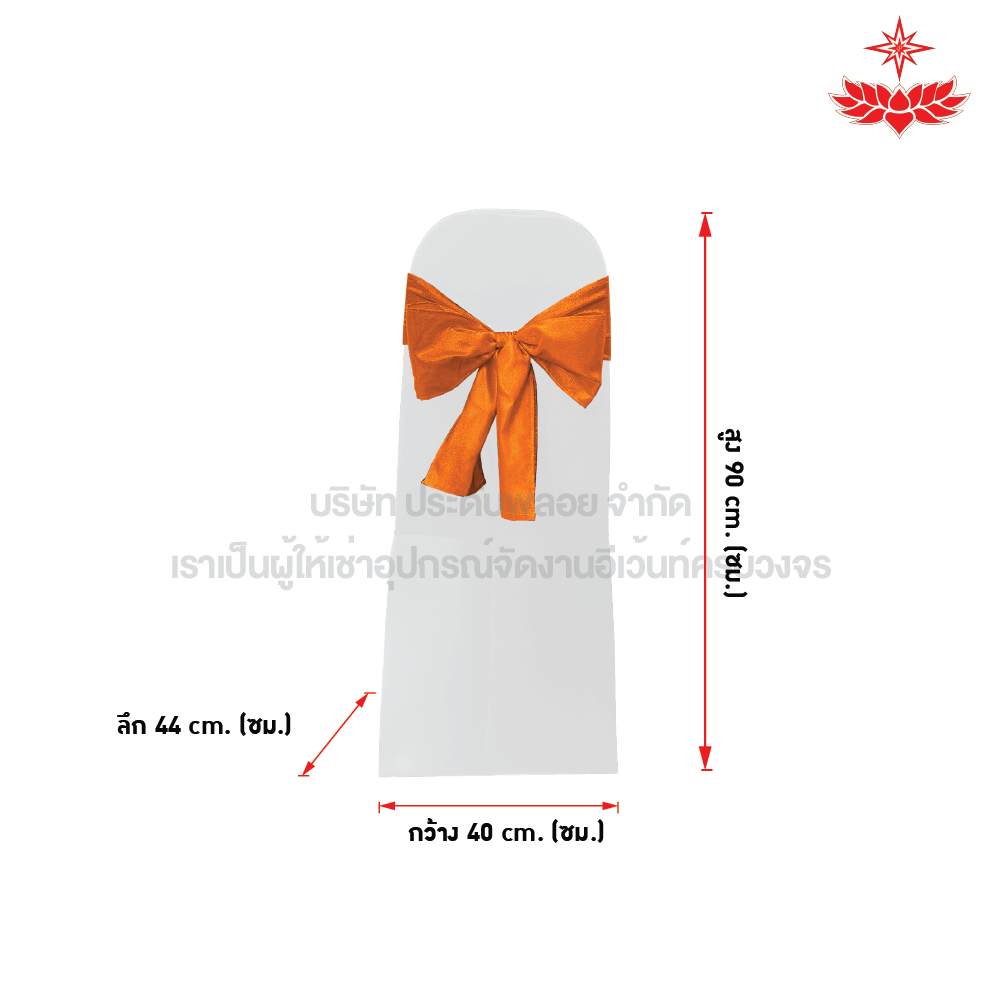 สนใจเช่าเก้าอี้บุนวมผ้าขาวสวมตึง + โบว์สีส้ม ได้มาตรฐาน รับประกันความพึงพอใจ ติดต่อ
