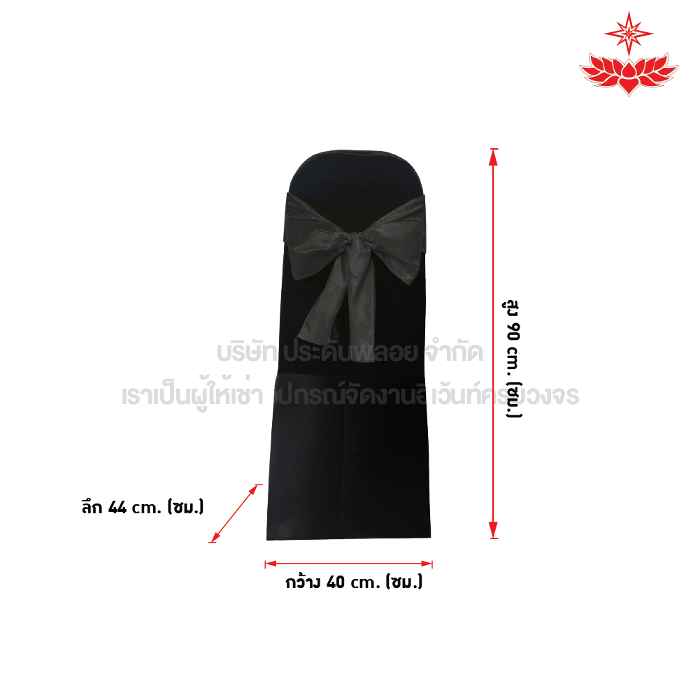 ผ้าดำตึงคลุมเก้าอี้บุนวม + โบว์สีดำ