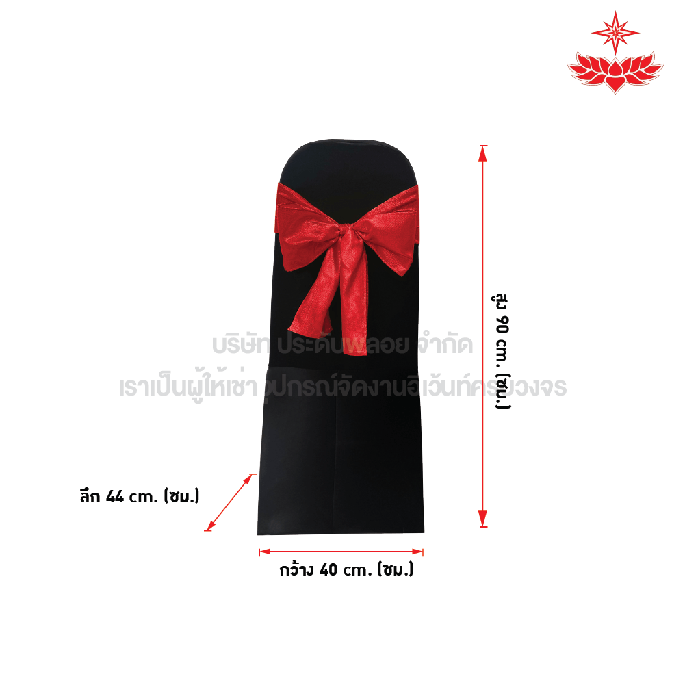 ผ้าดำตึงคลุมเก้าอี้บุนวมง + โบว์สีแดง