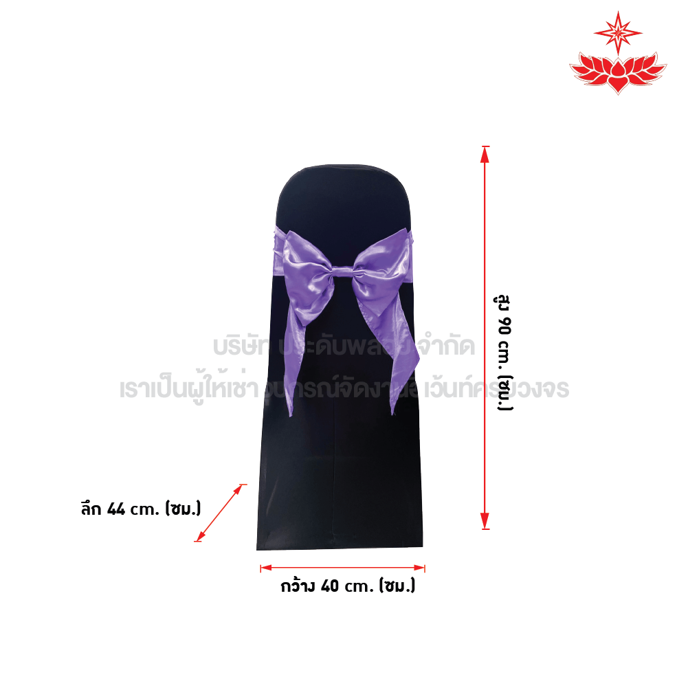 สนใจเช่าเก้าอี้บุนวมผ้าดำสวมตึง + โบว์สีม่วง ได้มาตรฐาน รับประกันความพึงพอใจ ติดต่อ