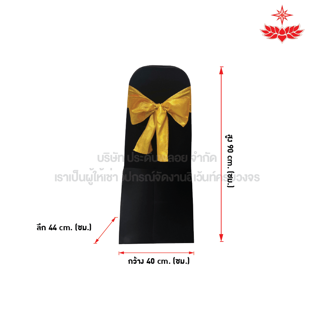 สนใจเช่าเก้าอี้บุนวมผ้าดำสวมตึง + โบว์สีเหลือง ได้มาตรฐาน รับประกันความพึงพอใจ ติดต่อ