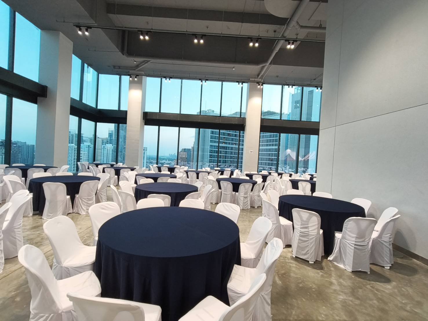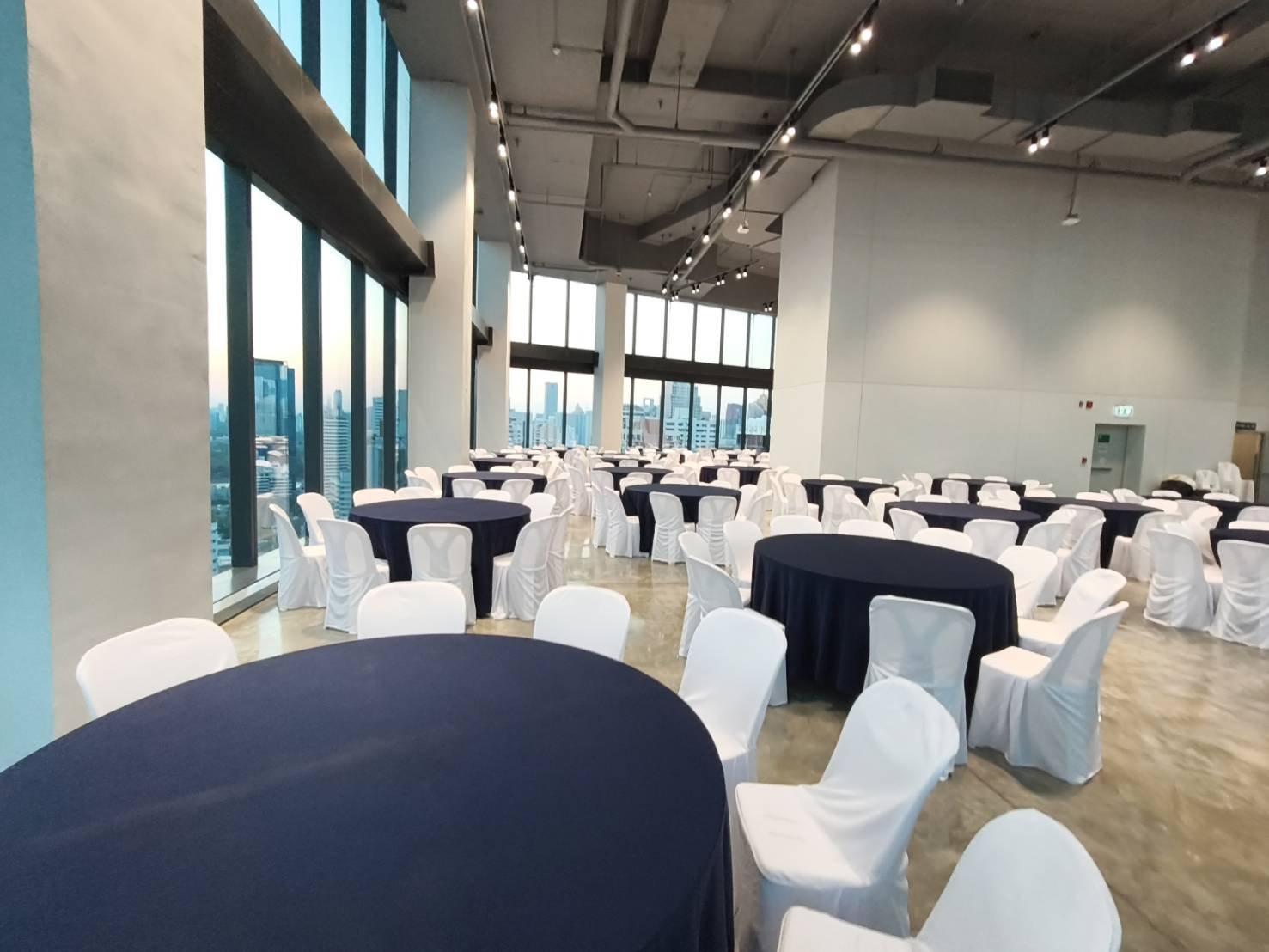 เก้าอี้จัดเลี้ยงคุณภาพสูง โครงเหล็กแข็งแรง บุฟองน้ำหนานุ่มนั่งสบาย เสริมความหรูหราและทันสมัยด้วย "ผ้าคลุมเก้าอี้แบบสวมตึง (Spandex)" สีดำสนิท ช่วยให้ภาพรวมของงานดูเป็นระเบียบ เรียบหรู และเป็นมืออาชีพ