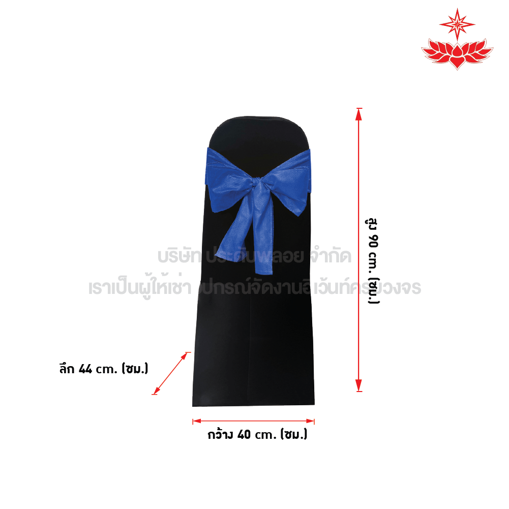 ผ้าดำตึงคลุมเก้าอี้บุนวม + โบว์สีน้ำเงิน