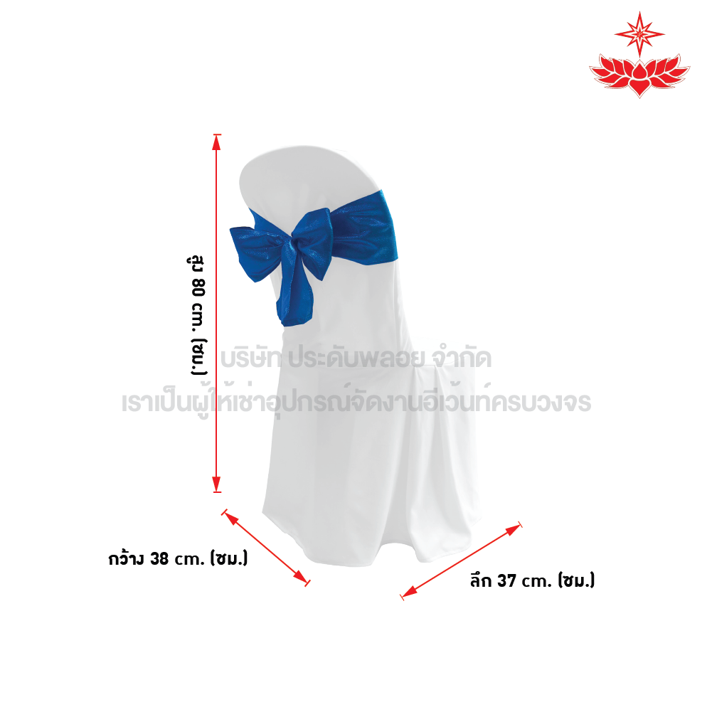 ผ้าขาวปล่อยคลุมเก้าอี้พลาสติก + โบว์สีฟ้า