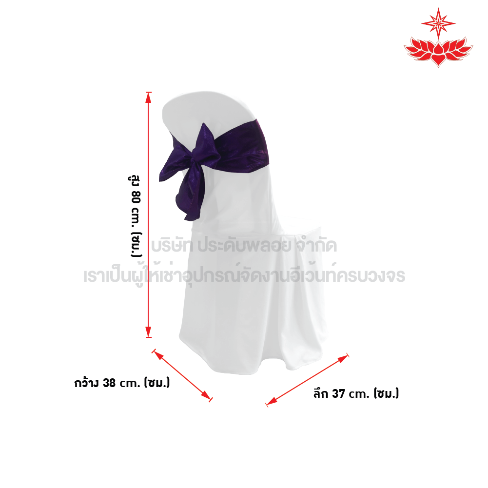 ผ้าขาวปล่อยคลุมเก้าอี้พลาสติก + โบว์สีม่วง
