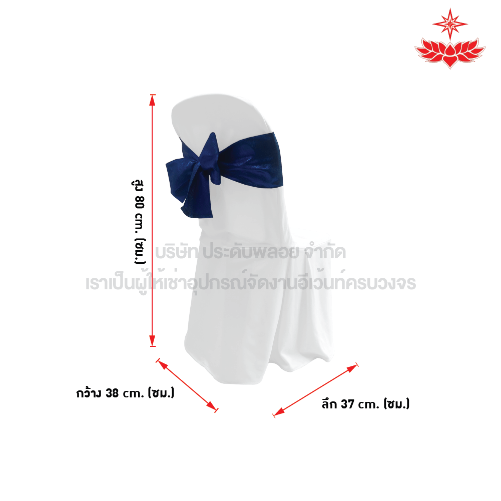 ผ้าขาวปล่อยคลุมเก้าอี้พลาสติก + โบว์สีน้ำเงิน