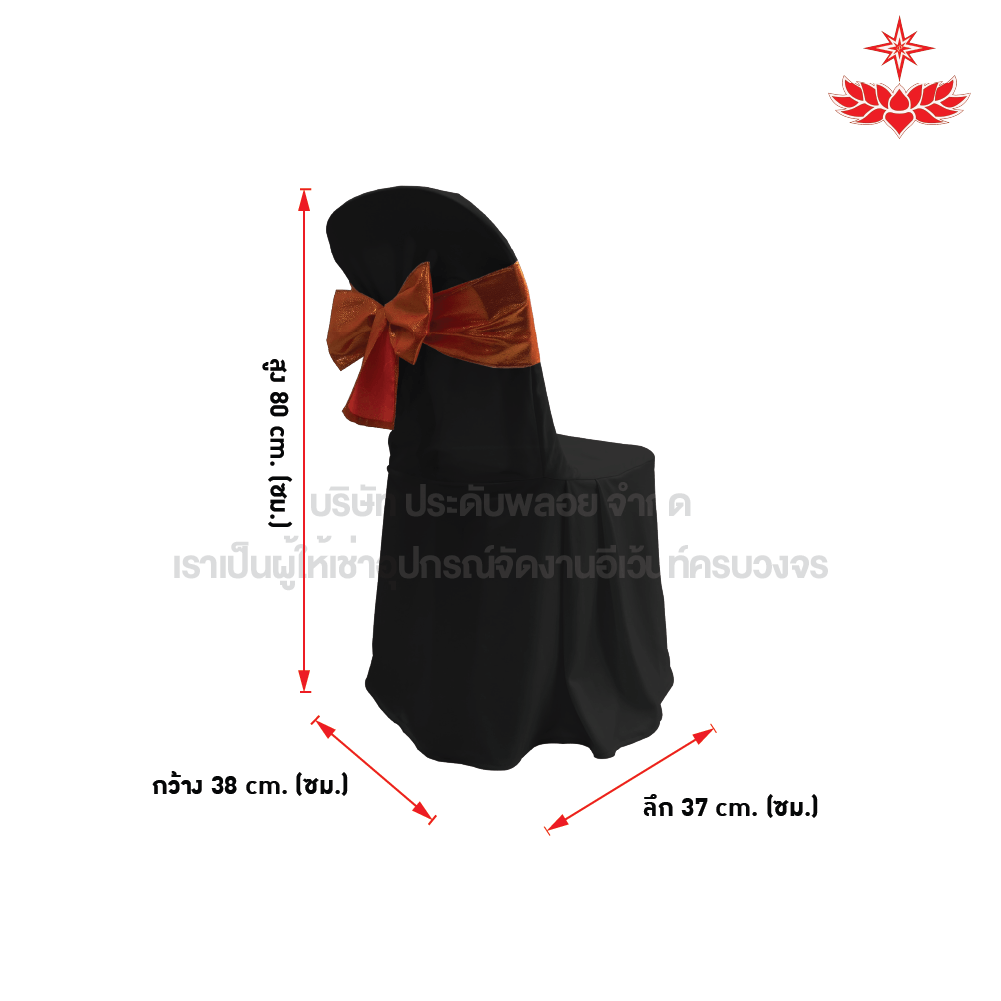 ผ้าดำปล่อยคลุมเก้าอี้พลาสติก + โบว์สีส้ม
