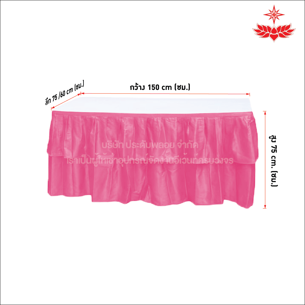 หากคุณกำลังเตรียมงานและต้องการ โต๊ะหน้าขาว 1.5x0.75/1.5x0.60 เมตร คลุมผ้าจีบสีชมพู ที่เชื่อถือได้ มีคุณภาพ และราคายุติธรรม ติดต่อเราได้ทันที ทีมงานของเราพร้อมให้คำปรึกษาและบริการอย่างมืออาชีพทุกขั้นตอน เพื่อให้งานของคุณเป็นไปอย่างราบรื่นและปลอดภัย
