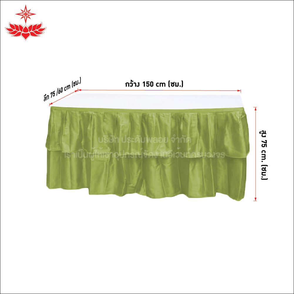 โต๊ะหน้าขาว 1.5x0.75/1.5x0.60 เมตร คลุมผ้าจีบสีเขียว
