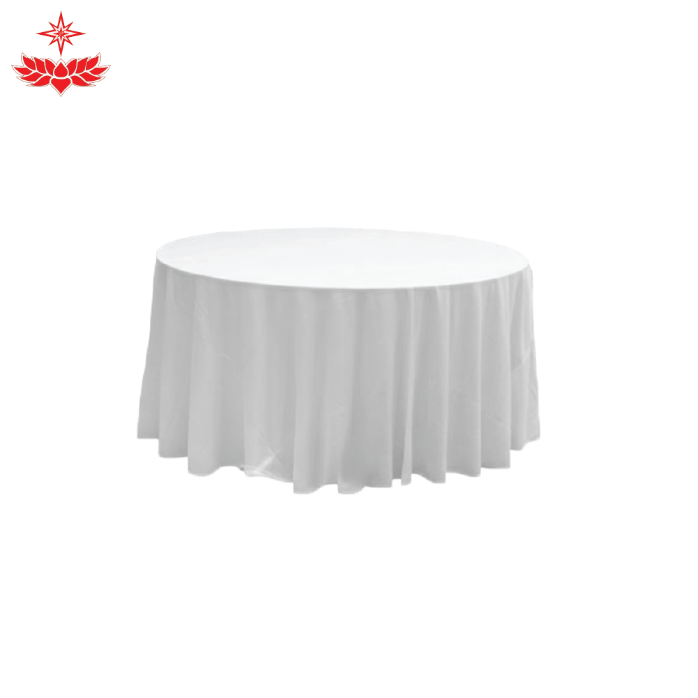 โต๊ะหน้าขาวกลม (ไซส์ L) ผ้าคลุมสีขาว ขนาดเส้นผ่านศูนย์กลาง 180 เซนติเมต สูง 75 เซนติเมตร