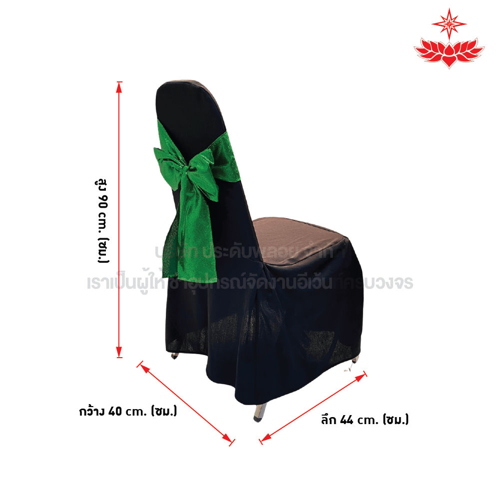 ผ้าดำปล่อยคลุมเก้าอี้บุนวม + โบว์สีเขียว
