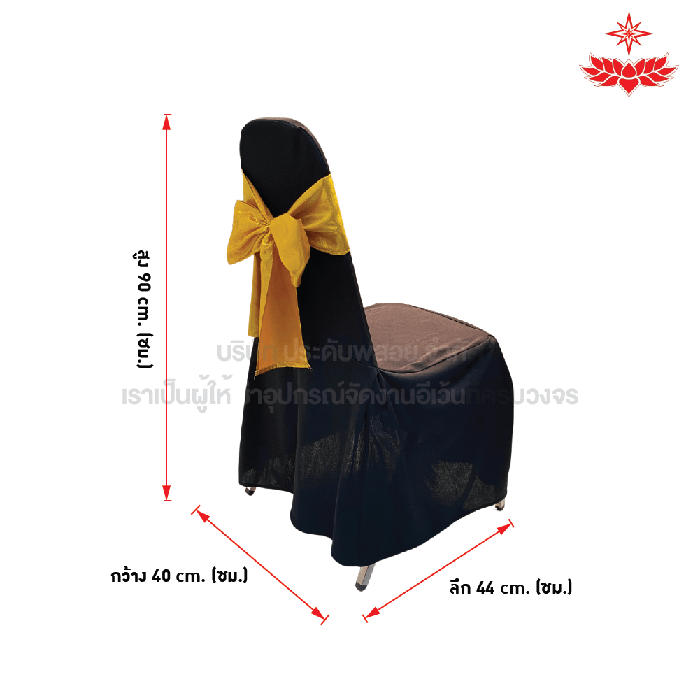 ผ้าดำปล่อยคลุมเก้าอี้บุนวม + โบว์สีทอง