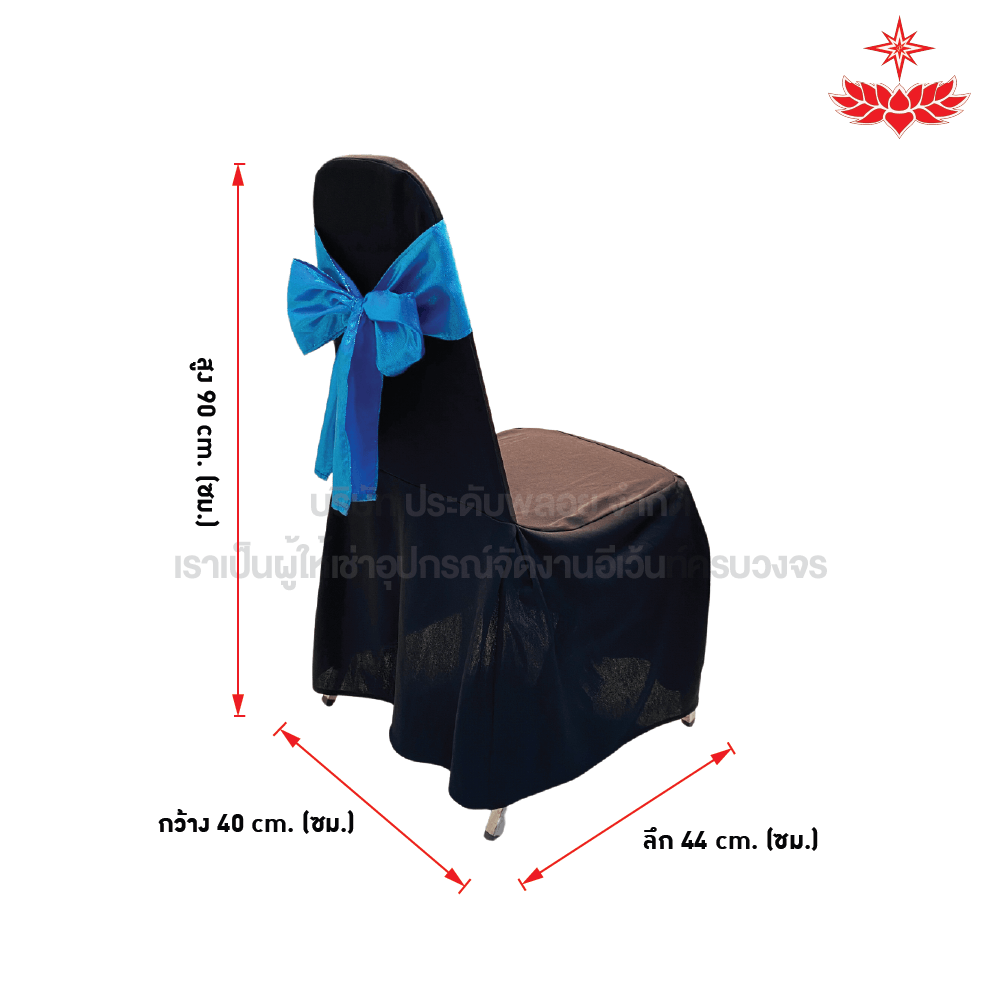 ผ้าดำปล่อยคลุมเก้าอี้บุนวม + โบว์สีฟ้า