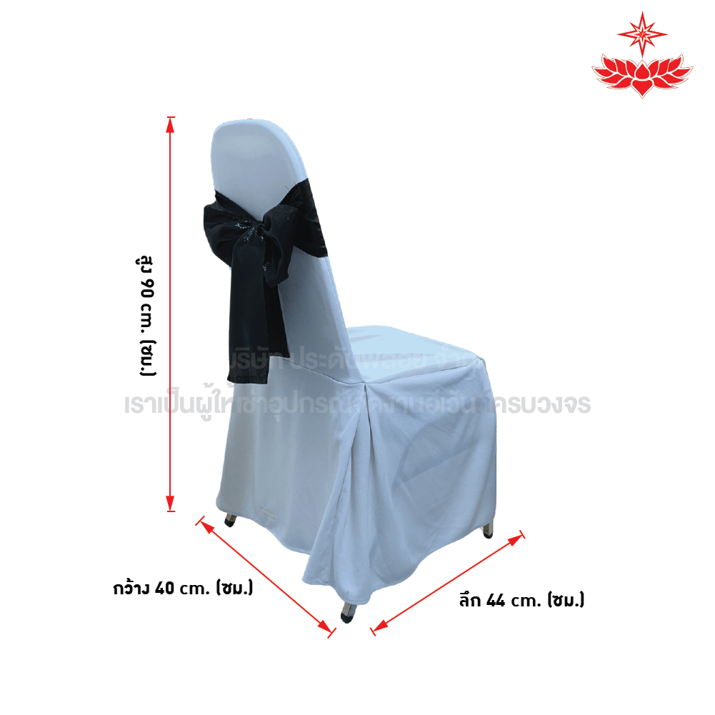 ผ้าขาวปล่อยคลุมเก้าอี้บุนวม + โบว์สีดำ