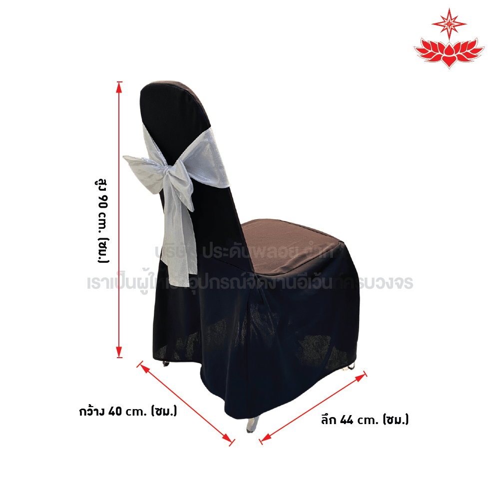 ผ้าดำปล่อยคลุมเก้าอี้บุนวม + โบว์สีเงิน