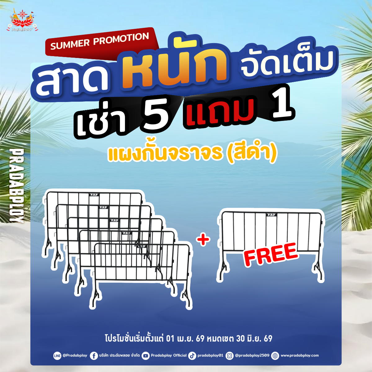เช่าแผงกั้นจราจร (สีดำ) 5 แถม 1โปรโมชั่นเริ่มตั้งแต่ 01 เม.ย. 69 หมดเขต 30 มิ.ย. 69